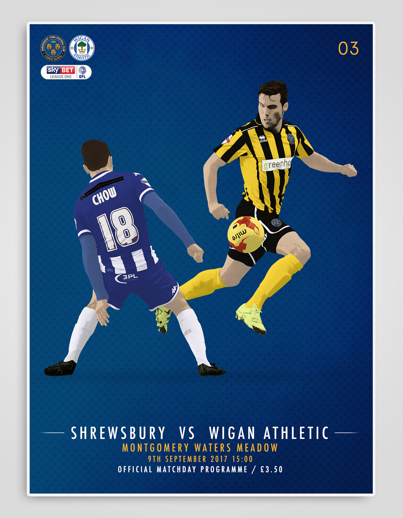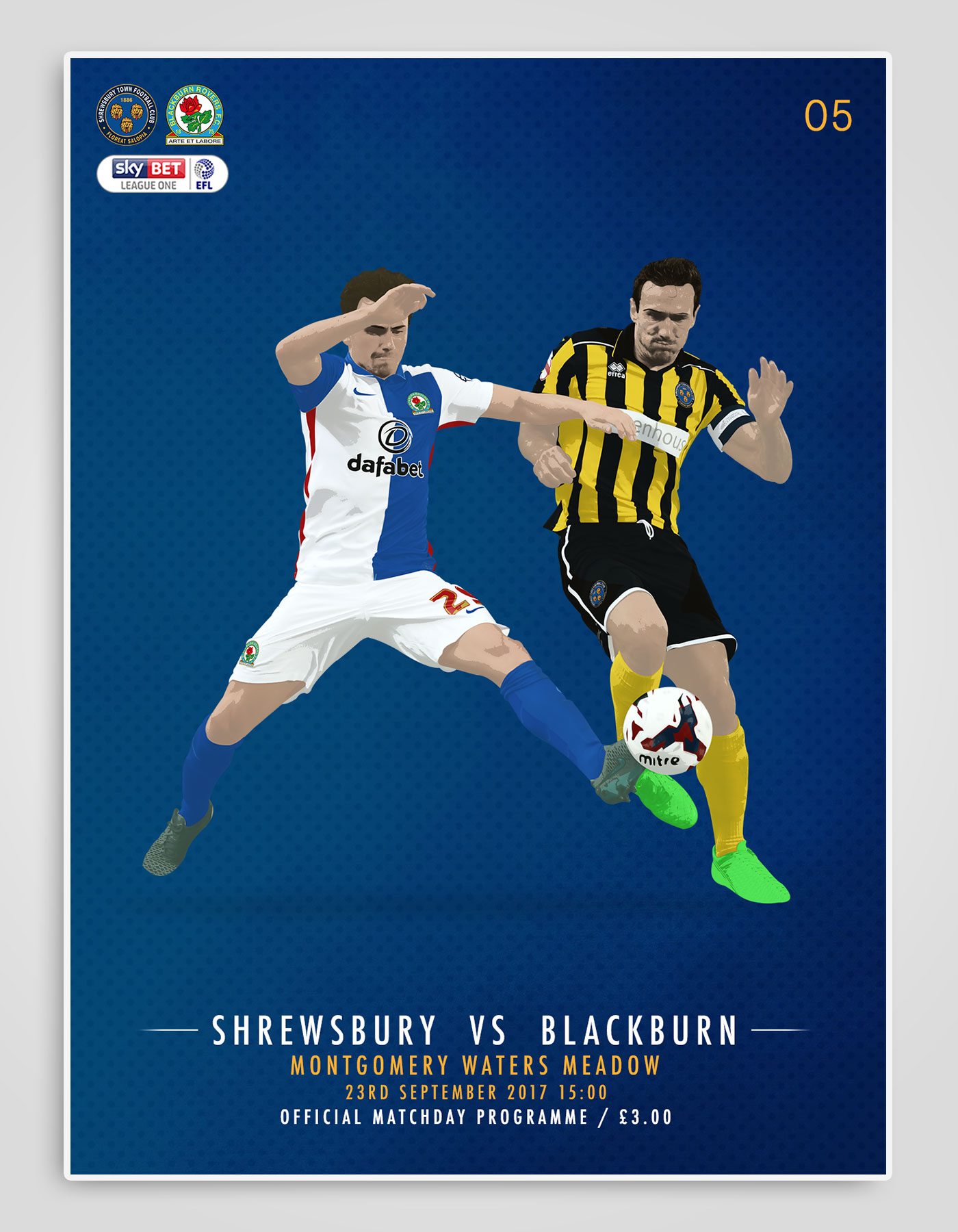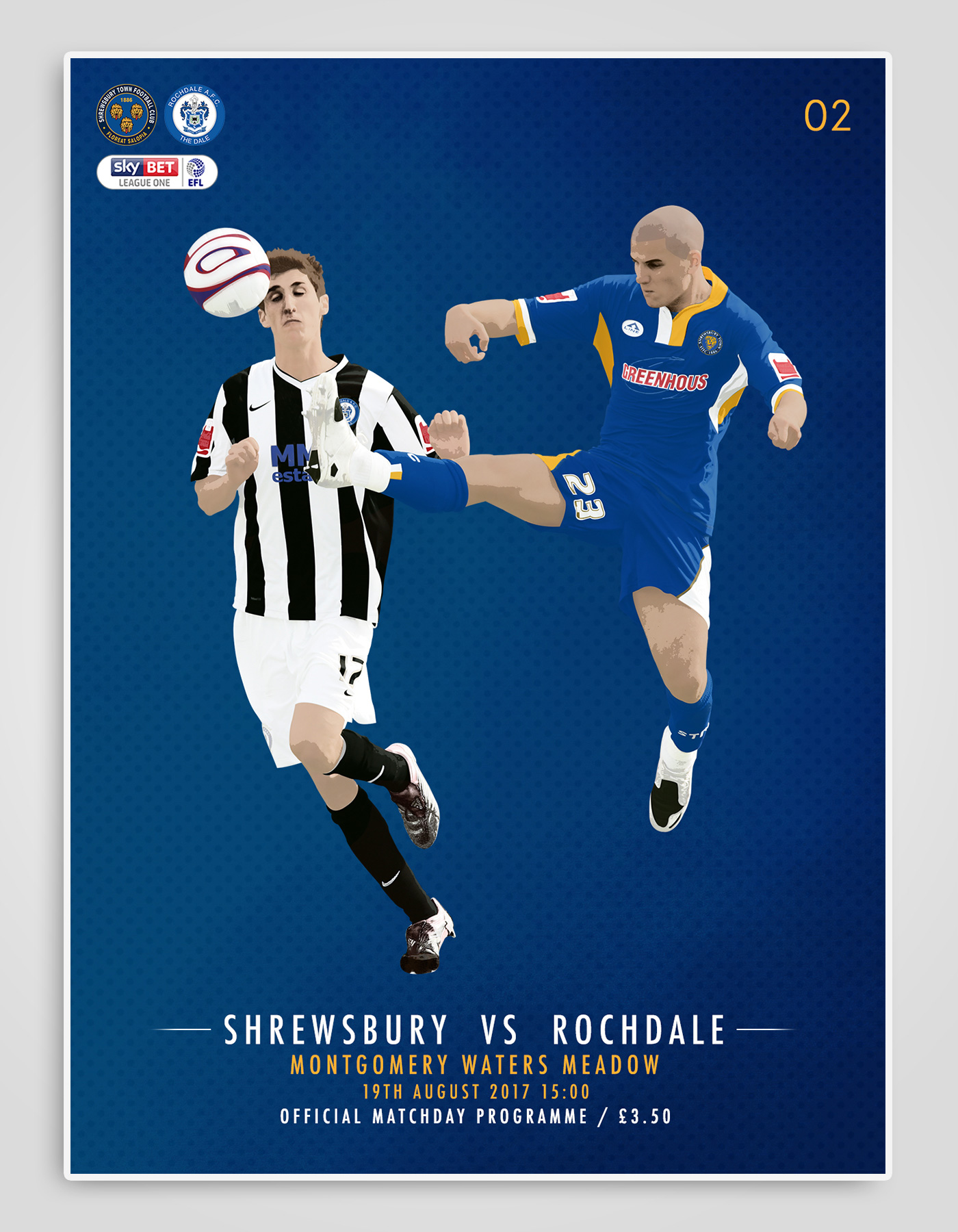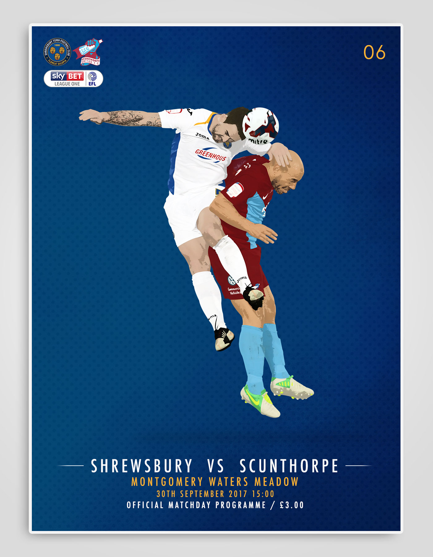 To celebrate 10 years since moving into the Montgomery Waters Meadow I was asked to create illustrated artwork of past players who had featured during the years Shrewsbury Town had been playing there. These images would then go on to feature as the front cover for each home match programme.