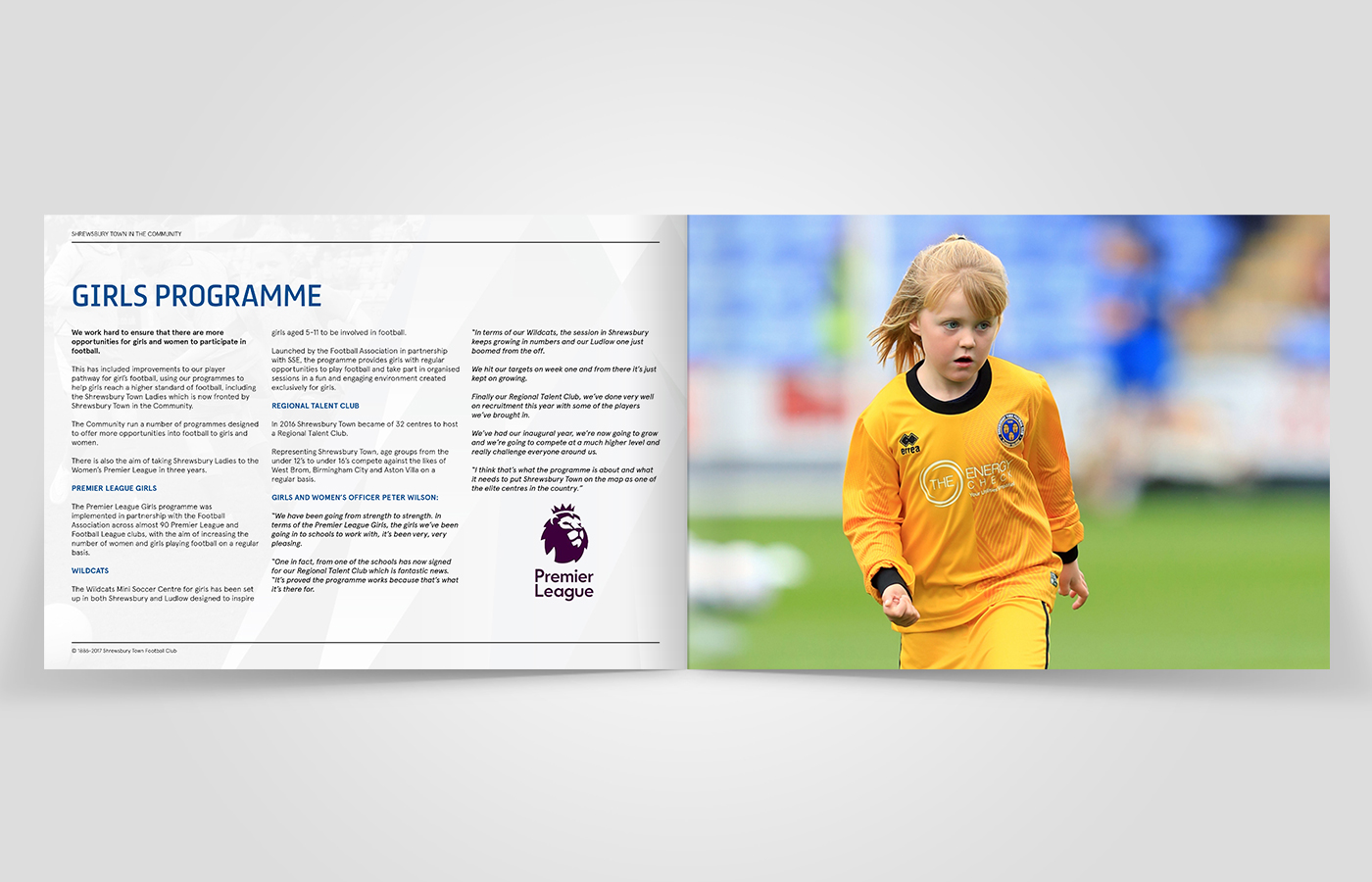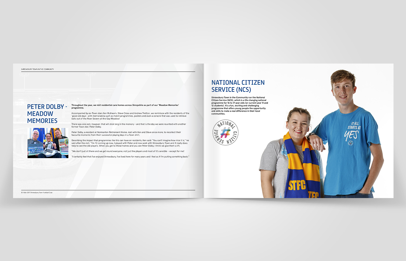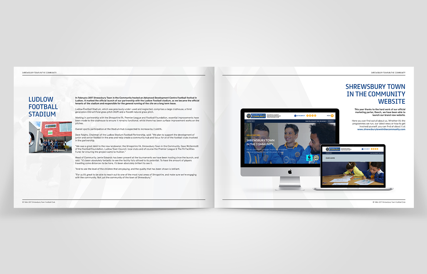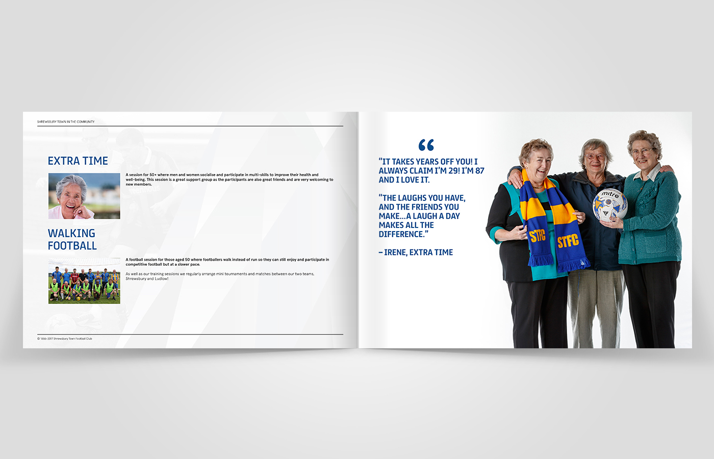 I was asked to create an annual review for Shrewsbury Town in the Community for the 2016/17 period. This brochure would contain statistics and information on what the charity had been up to over the past year and the results they had achieved.
